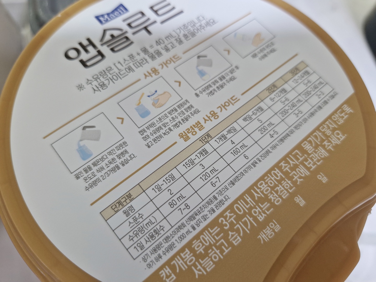 원래 먹던 분유처럼 앱솔루트를 원샷하더라구요.